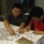 出差帶著晚上在旅館大廳拼拼圖